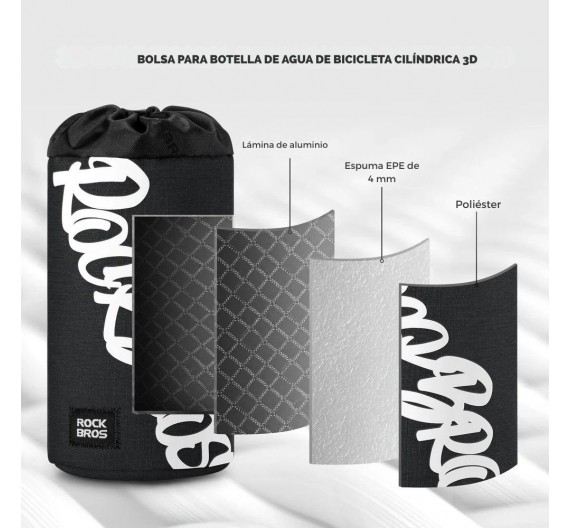 Bolso porta botellas térmica marca Rockbros para bicicleta. Ideal para llevar tus bebidas y mantener su temperatura por varias horas.