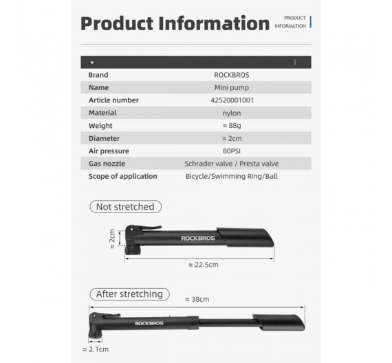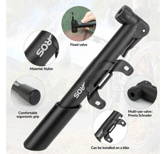 Inflador Portátil Rockbros con fuerza de presión de 80 psi. Le permite inflar llantas MTB o de ruta, incluso balones sin dificultad