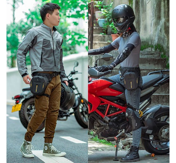 Canguro Piernero ROCKBROS B107 para moto o bicicleta. Un estuche con cuerpo exterior rígido, Marcas reflectivas y cierres herméticos que mantendrán tus cosas secas y seguras.