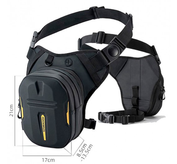 Canguro Rockbros Tipo Piernero de amplia capacidad. Cierres impermeables cuerpo de gran resistencia. Estuche para bicicleta o moto.