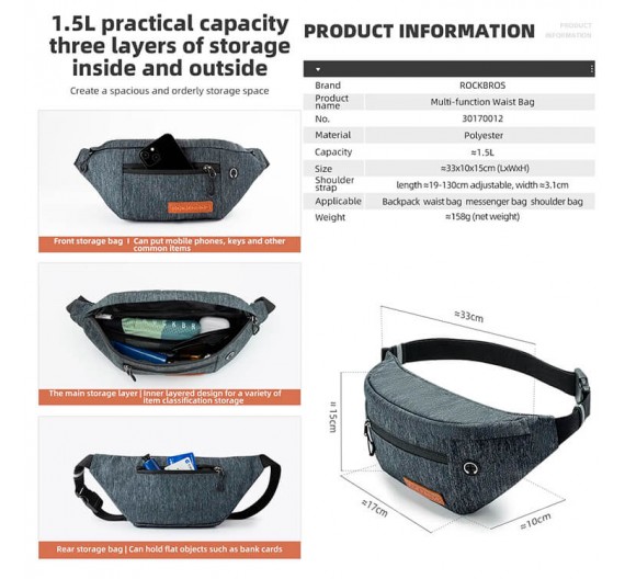 Un canguro liviano y con tela impermeable, ideal para hacer todo tipo de deporte: ciclismo, running, yoga en el gimnasio etc. con un diseño elegante y con materiales de excelente calidad ideal para llevar tus pertenencias marca ROCKBROS.