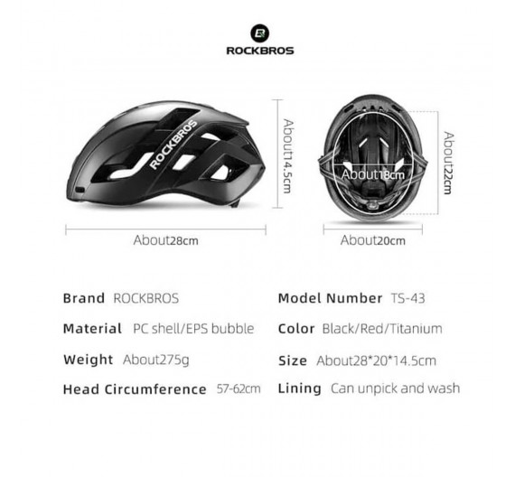 Casco integral de ciclismo marca ROCKBROS modelo TS-43BK. Posee una superficie superior desmontable que controla la ventilación.