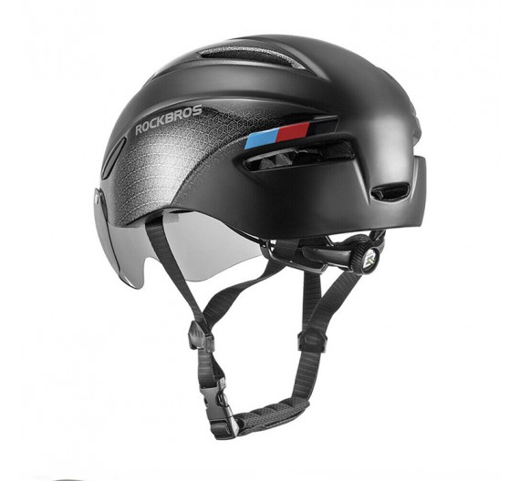 Casco Rockbros WT018-S Para ciclismo. Incluye lentes magnéticos. Un casco de alta resistencia que protege ojos y cabeza durante jornadas deportivas.