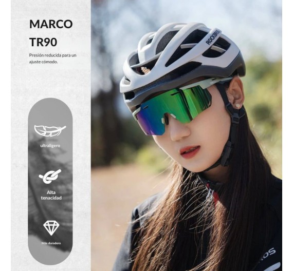 La nueva tendencia en gafas de sol para ciclismo marca Rockbros. Su lente fotocromático tipo espejo color le aporta mucho estilo y funcionalidad a los modelos de gafas deportivas. Además su lente cuenta con filtro UV400. Combina materiales de policarbonato y TR90 para hacerlas más resistentes que nunca.