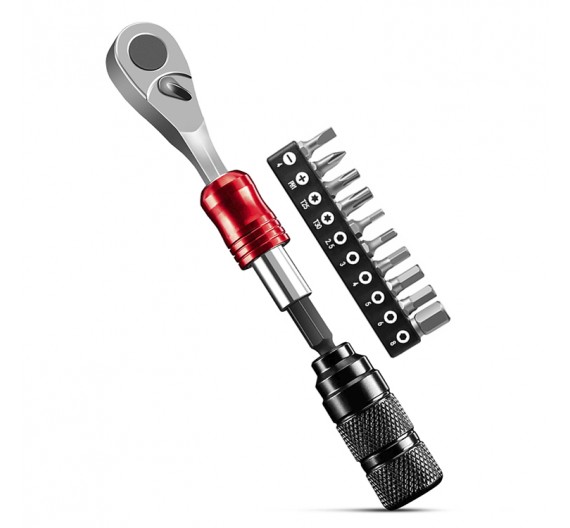 Una herramienta como esta llave de trinquete no te puede faltar en tu kit de despinche para bicicleta o moto.