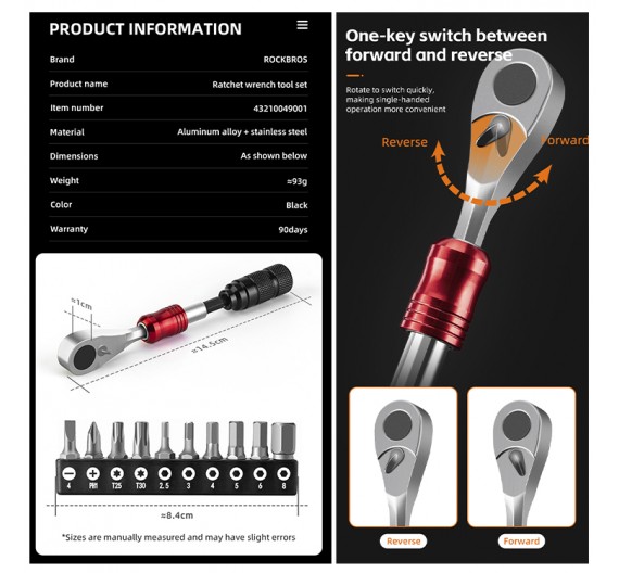 Nombre del producto: Juego de Herramientas de Llave de trinquete de 72 dientes