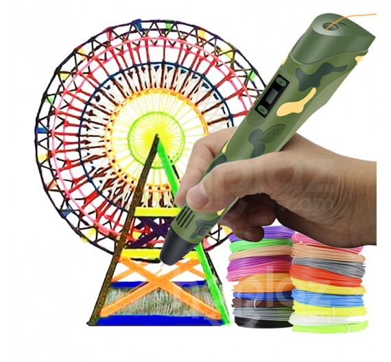 El lápiz 3D te permite dibujar con plástico. Se puede trabajar el plástico con cualquier forma y aplicarlo a la mayoría de superficies, se puede usar para añadir a distintos objetos cotidianos decorativos, con la práctica, incluso se puede hacer formas en 3D imprimiendo filamento en el aire.