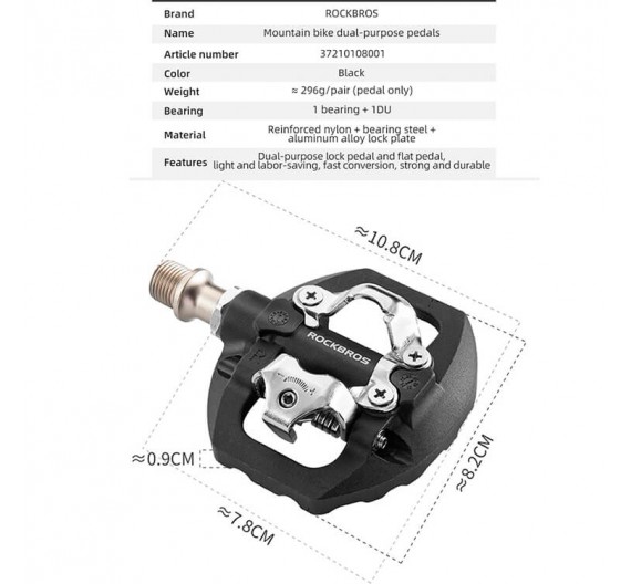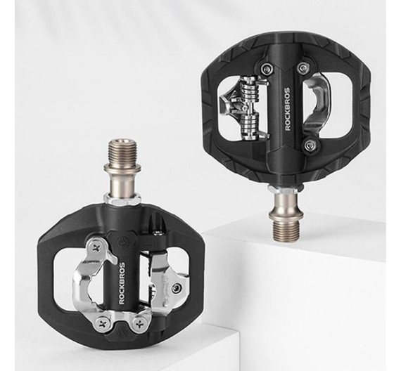 Pedales Rockbros con sistema de bloqueo profesional premium para ciclismo. Unos pedales doble propósito con extremo plano con grips antideslizantes para calzado deportivo tradicional. Estos pedales están diseñados para ser usados por todo tipo de deportista y adaptado a todo tipo de calzado. Materiales de alta resistencia al desgaste. Livianos y de excelente tamaño.
