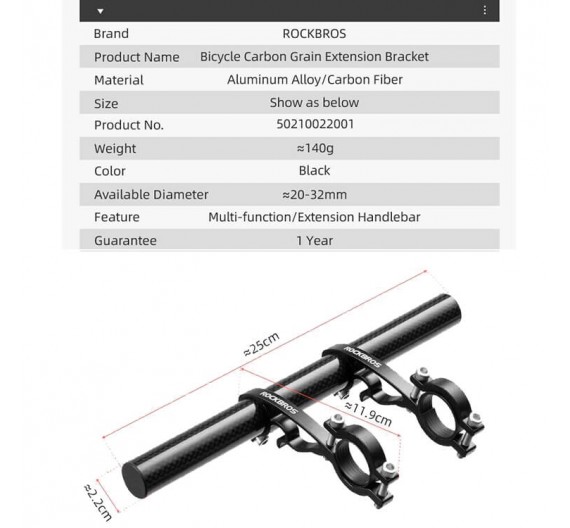 Esta extensión de manillar está hecha de tubo de fibra de carbono con soporte de aleación de aluminio, que es de alta calidad con un peso ligero de 140 g.